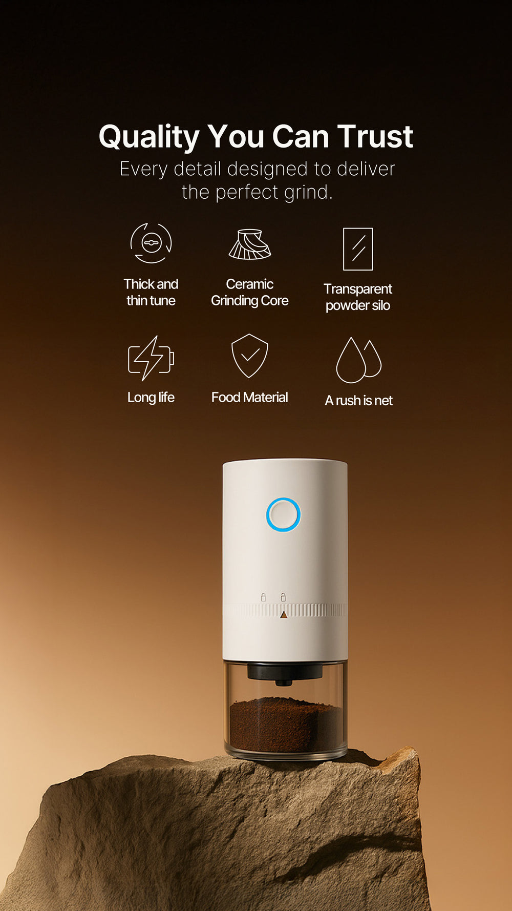 Grind fresh beans anywhere — compact, precise, and crafted to unlock the full flavor of every cup.